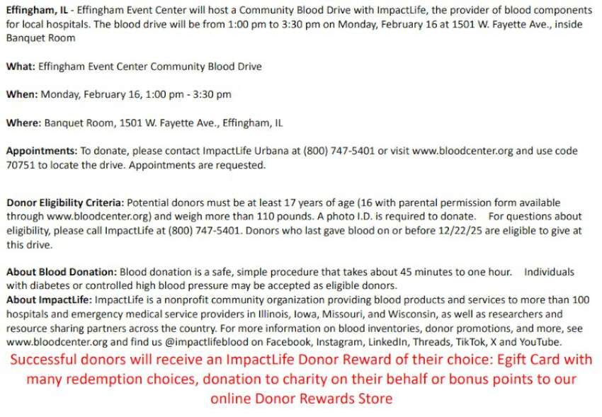 ImpactLife Blood Drive at Effingham Event Center