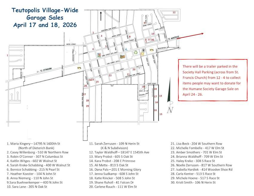 The Teutopolis Village-Wide Yard Sales are on Friday and Saturday, April 17- 18.