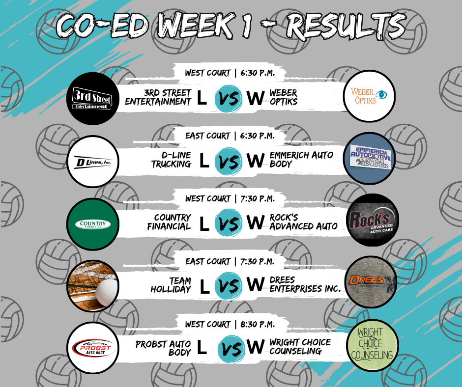 The Effingham Park District Co-Ed Volleyball League Week 1 Results: